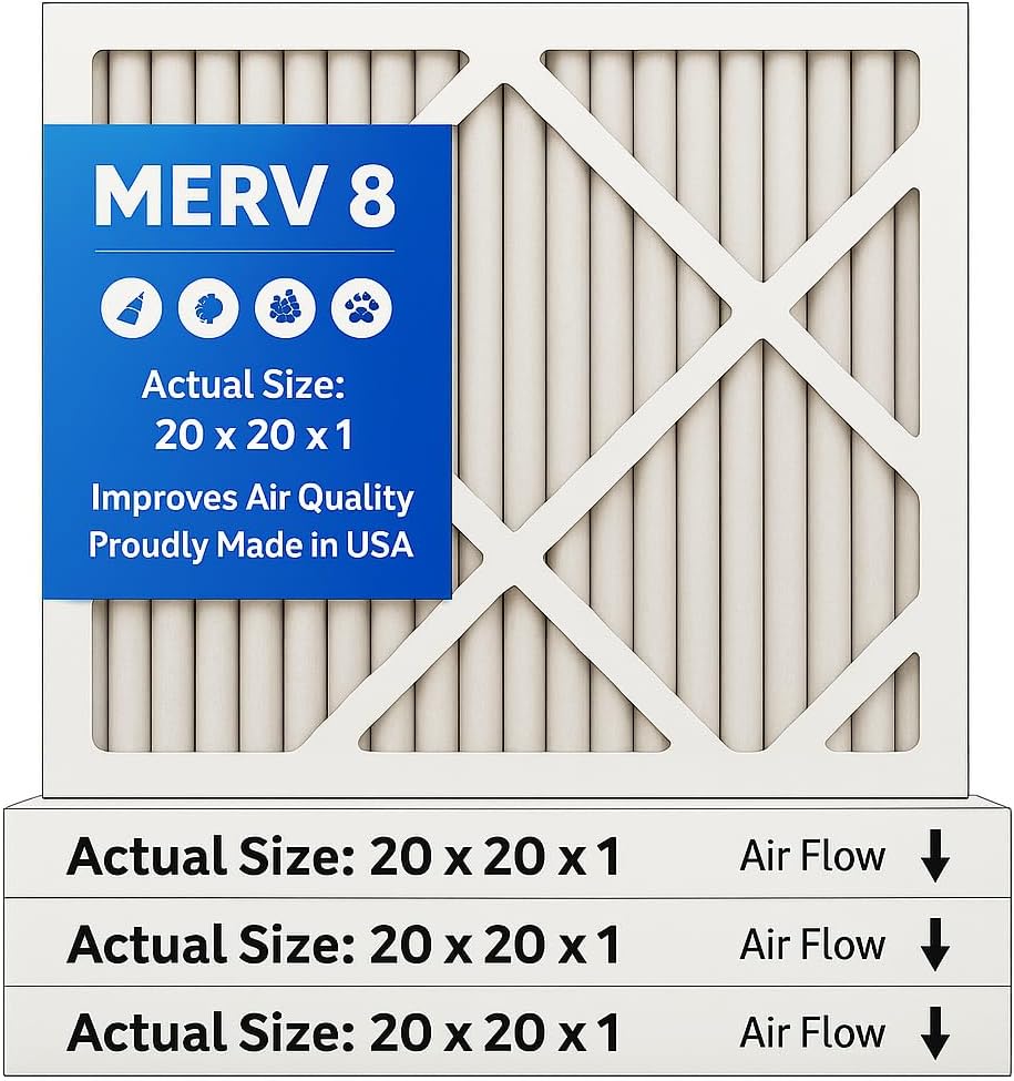 Improve your home air quality with this pack of 4 MERV 8 pleated HVAC air filters. Designed specifically for dust filtration, these replacement filters measure 19.5 x 19.5" x 0.75" (actual size) and fit standard air conditioning and heating systems. The MERV 8 rating provides effective filtration of common household particles, helping to filter airborne particles and create a cleaner living environment
